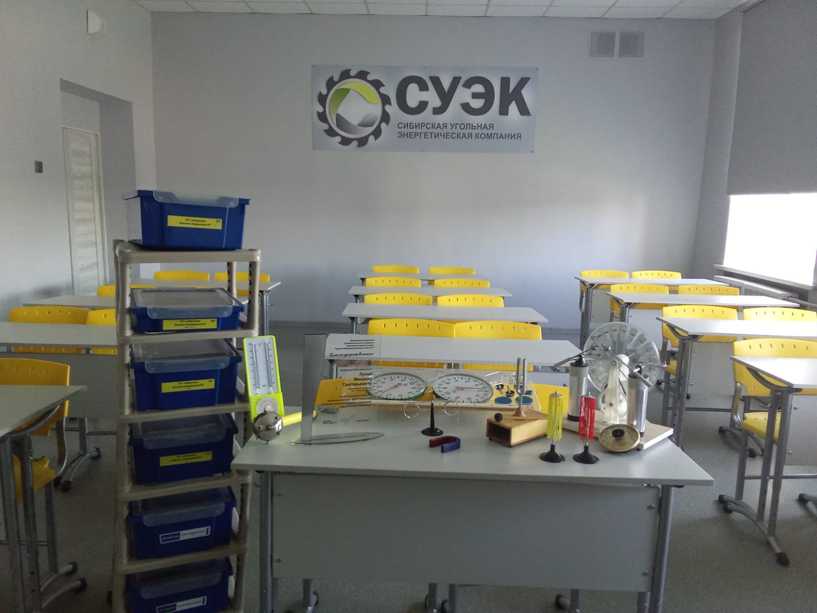 6 макбуков, 6 сканеров, 6 звуковых колонок, 6 принтеров, электронный микроскоп, перекидная классная доска.