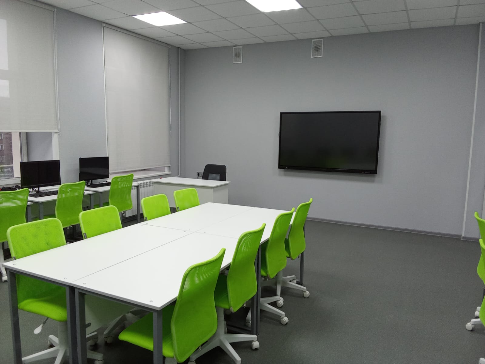 Моноблоки 13 шт, колонки, принтер, специализированное ПО для видеоконференций, видеокамера высокой четкости, интерактивная доска